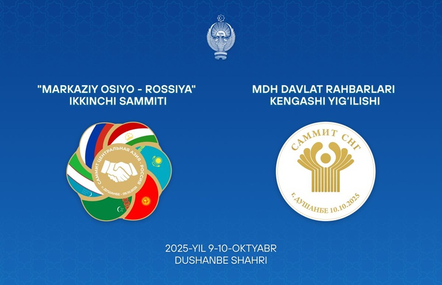 2025-10-09 102Президент Узбекистана Шавкат Мирзиёев 9-10 октября примет участие в очередном заседании Совета глав государств СНГ и втором саммите формата «Центральная Азия + Россия», которые состоятся в Душанбе.